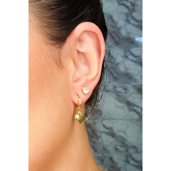 Brinco Argolinha com Coração Grande Banhado em Ouro 18k