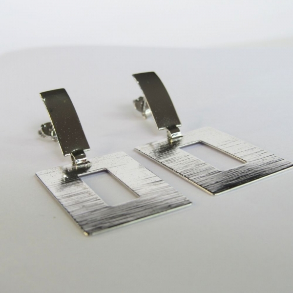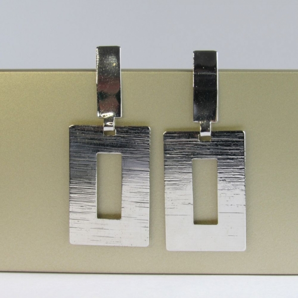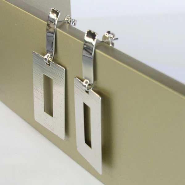 Brinco com Fio Retangular Banhado em Ródio Branco