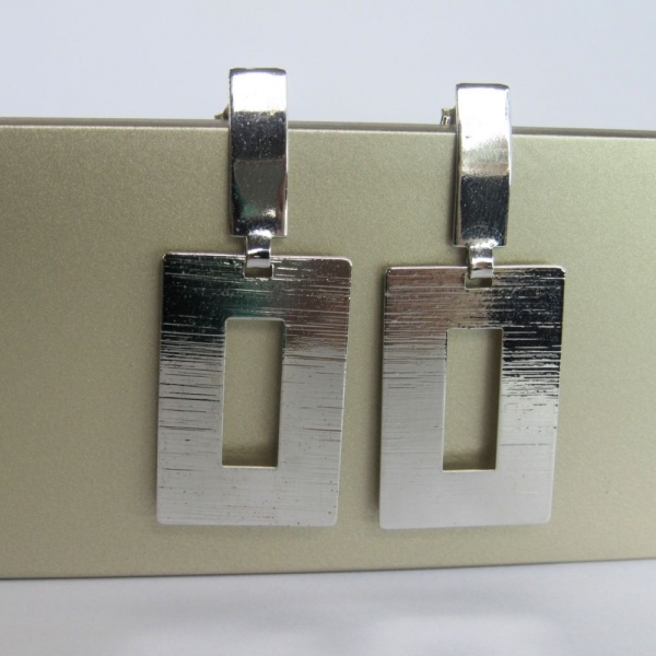 Informações do produto: Brinco com Fio Retangular Banhado em Ródio Branco
