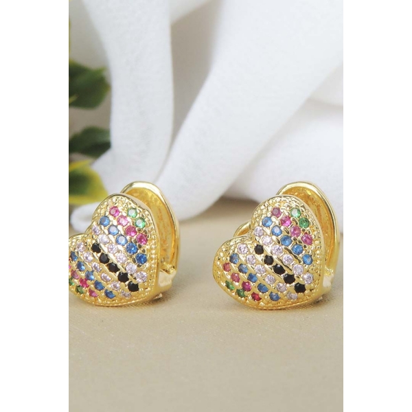 Brinco Coração com Mini Zircônias Coloridas Banhado em Ouro 18k