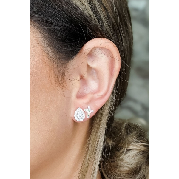 Informações do produto: Brinco Gota com Zircônias em Prata 925