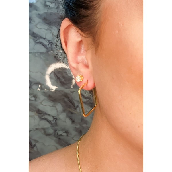 Este brinco apresenta uma pequena argola quadrada, banhada em ouro 18k. O design moderno e elegante adiciona um toque de sofisticação ao seu visual. Ideal para quem busca uma peça versátil e estilosa, perfeita para uso diário. A argola quadrada possui um acabamento polido que garante um brilho intenso e duradouro.