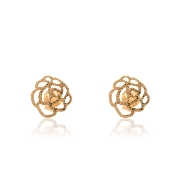Brinco Pequeno de Rosa Vazada Banhado em Ouro 18k