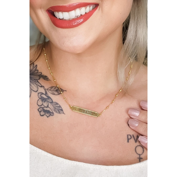 Colar com Corrente e Pingente Gratidão Banhado em Ouro 18k