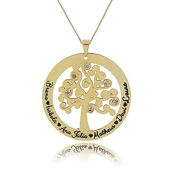 Colar Personalizado Árvore de Vida com Nomes Folheado em Ouro 18K