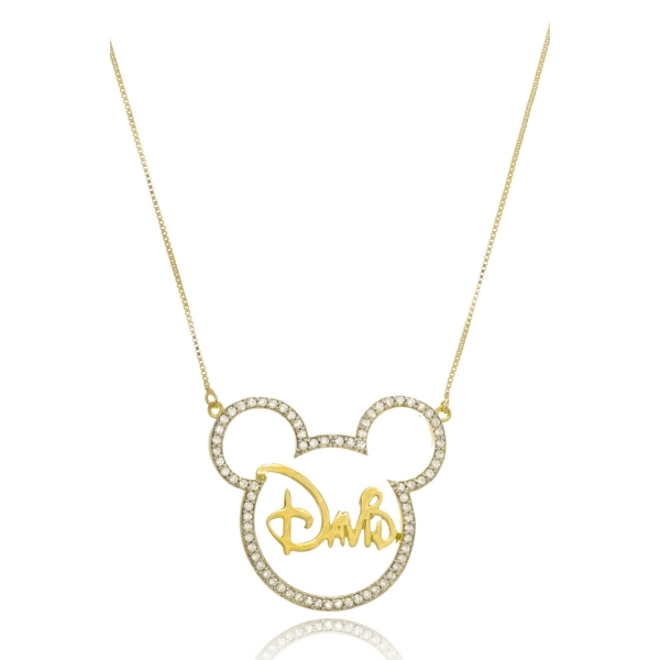 Colar Personalizado Mickey e Minnie Nome Trabalhado em Zircônia