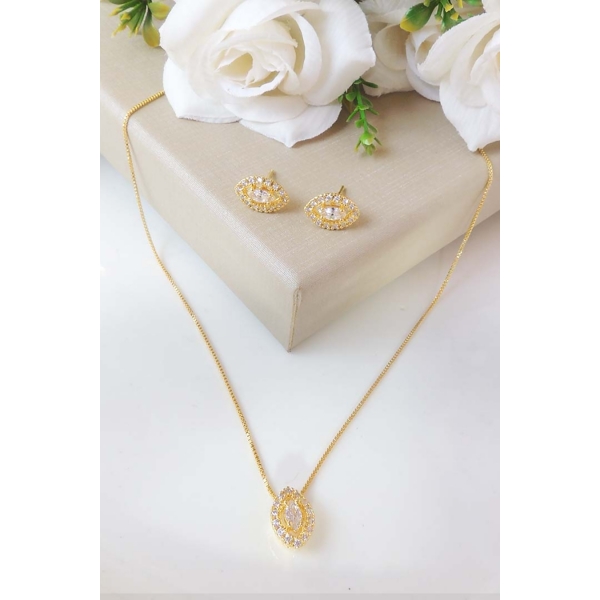 Este conjunto encantador apresenta pedras de zircônia banhadas em ouro 18 quilates, oferecendo um toque de brilho e elegância ao seu visual. Seu design versátil faz dele uma escolha perfeita para complementar uma variedade de looks, do casual ao formal.