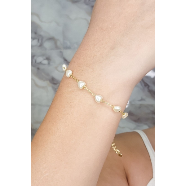 Pulseira de Coração de Pérola Banhado a Ouro 18k
