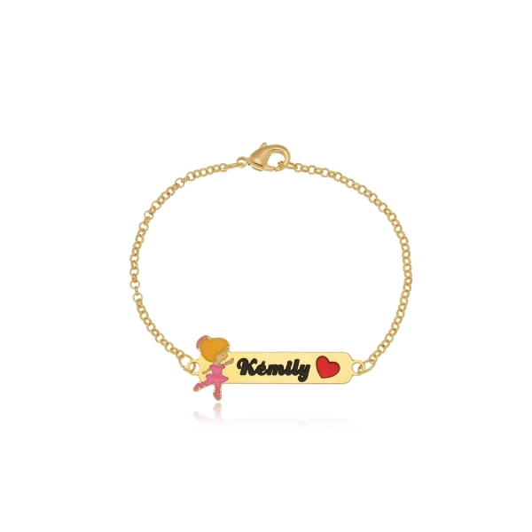 Pulseira Personalizada Chapada Com Nome e Desenho Folheado em Ouro 18k Personagem Bailarina