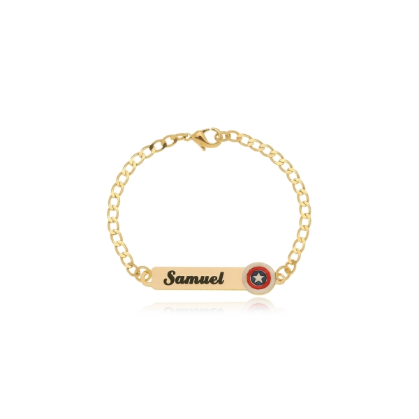 Pulseira Personalizada Chapada Com Nome e Desenho Folheado em Ouro 18k Personagem Batman