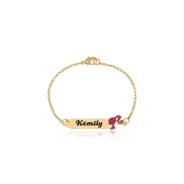 Pulseira Personalizada Chapada Com Nome e Desenho Folheado em Ouro 18k Personagem Olaf