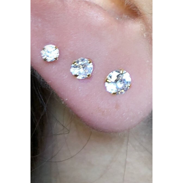 Este trio de brincos é uma ode ao brilho e à beleza radiante das zircônias. Cada par apresenta uma zircônia deslumbrante, cuidadosamente cravada em um design elegante e contemporâneo. As zircônias, conhecidas por sua semelhança com diamantes, adicionam um toque de glamour e sofisticação a cada brinco. Banhados em ouro 18k, esses brincos são a escolha perfeita para quem busca um toque de brilho e elegância em seus acessórios.